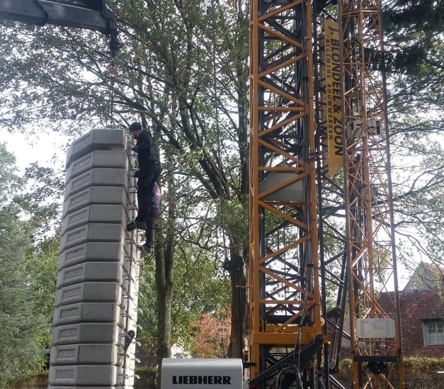 Berekende betonnen voeten voor snelmontagekranen zonder gedoe met houten balken. Stevig en stabiel.