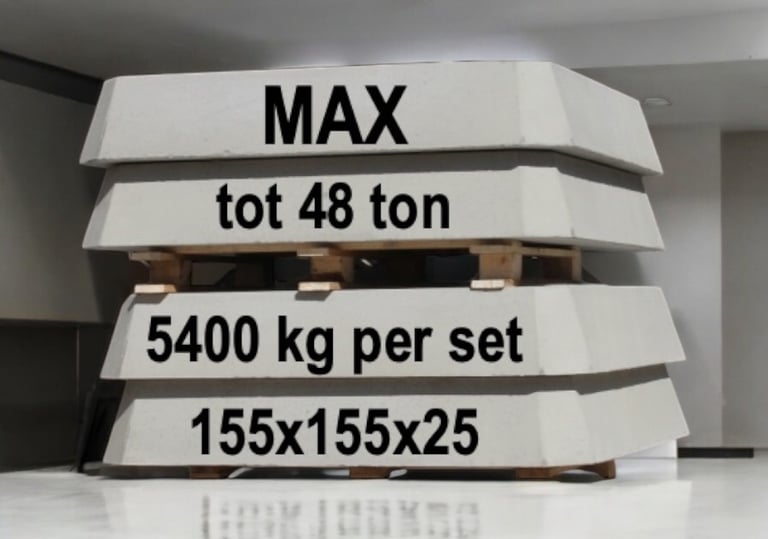 Onze betonnen voetblokken bieden een veilige basis voor snelmontagekranen, zonder gedoe met houten balken. Geschikt voor elk type kraan, zorgen ze voor stabiliteit en veiligheid.